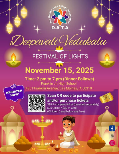 Get ready for a spectacular journey, into the heart of our rich Telugu culture! The D.A.T.A. Cultural Extravaganza is set to bring a series of planned events that promise to showcase the vibrancy, diversity, and traditions of our community.
